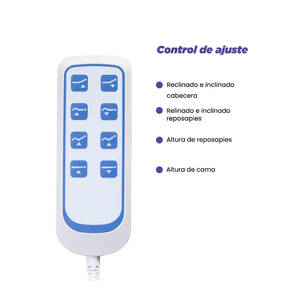 * el controlador de mano tiene un alambre de resorte flexible, lo que hace conveniente y flexible para operar la cama del hospital en la mejor posición. Las enfermeras pueden controlar fácilmente todas las funciones estándar, incluida la función de RCP con un solo botón y la función de luz de fondo.