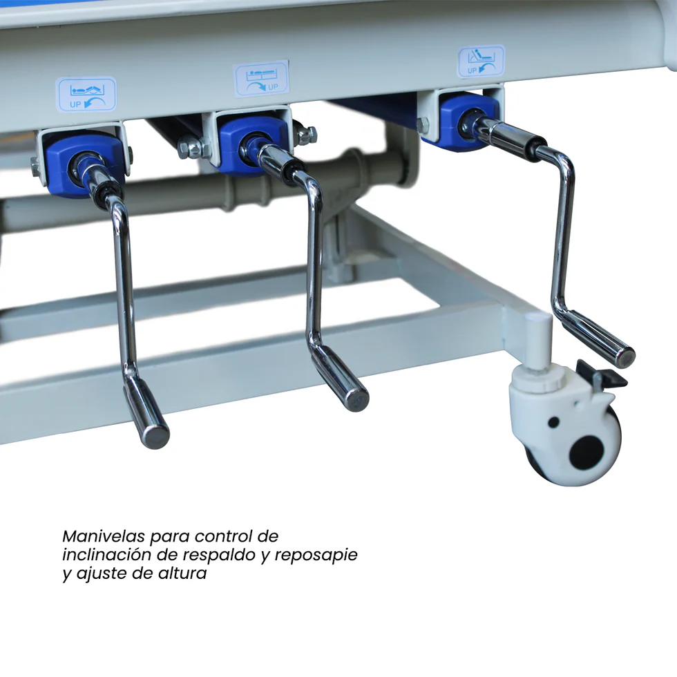 Durabilidad y Control: Cama Clínica Manual de 3 Manivelas