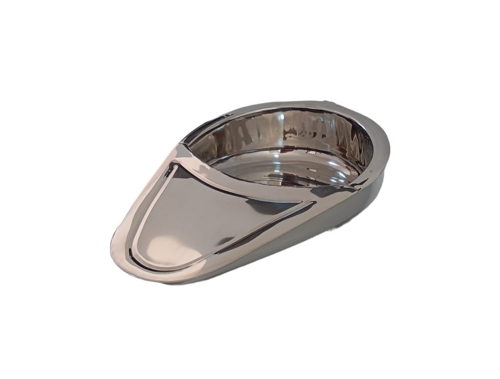 Chata Pico de Pato de Acero Quirúrgico, elaborada de 100% acero quirúrgico esterilizable. Es un elemento esencial en el cuidado y la comodidad de los pacientes en cama o con movilidad reducida que les impide trasladarse a los servicios higiénicos, utilizado para aseo genital y receptor de evacuaciones. Producto con uso domiciliario y hospitalario. Es práctica, liviana y resistente con diseño ergonómico que permite un menor esfuerzo al elevar la cadera. Uso unisex.