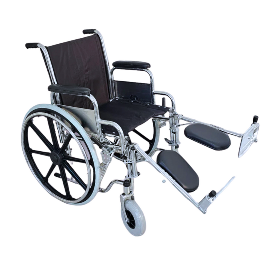 Silla de ruedas traumatológica importada de alta calidad. Diseñada para pacientes en recuperación traumatológica. Resistente y cómoda.